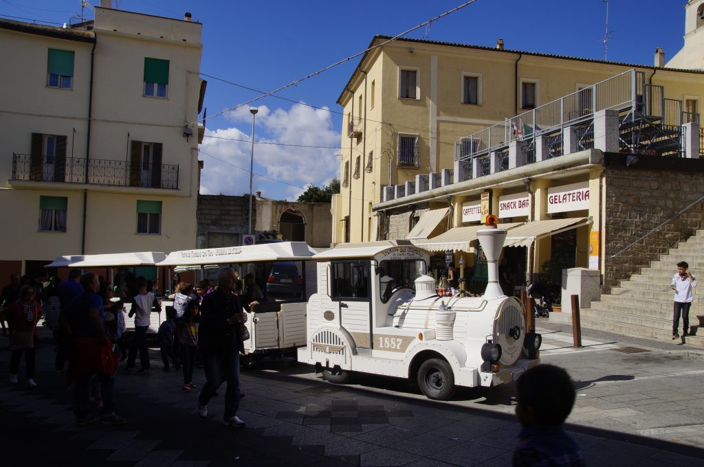Inzwischen nehmen immer mehr Ortschaften an diesem Autunno in Barbagia teil und die Organisation wird immer professioneller. Man erhält am Ortseingang meistens einen Flyer über die Verteilung der offenen Höfe in den Straßen, damit man gleich weiß, wo es was gibt. Kleine Zügchen zum Personentransport werden auch schon eingesetzt.