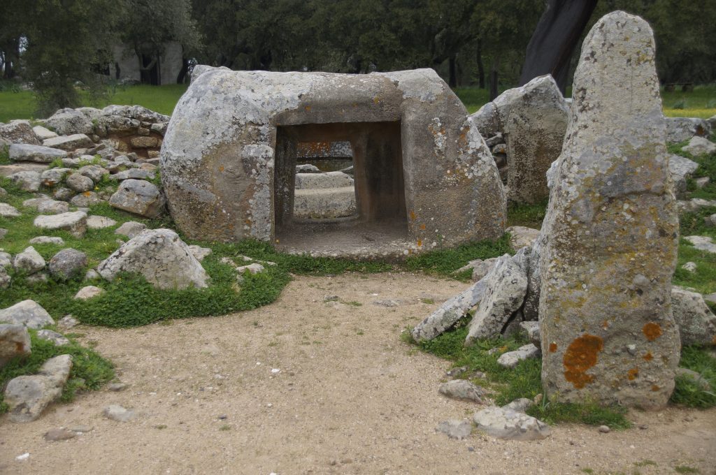 Es gibt auch vier Grabstätten auf dem archäologischem Gelände, hier eines der Gräber. Am Eingang von diesem Grab steht ein Menhir, der Wächter des Grabes. Die Grabkammer wurde durch das viereckige Loch betreten. Unvorstellbar der Kraftaufwand, dieses Loch in den Stein zu hauen mit den damaligen Werkzeugen.